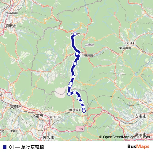 Click here to view the nearest 01 - 急行草軽線 bus stop.