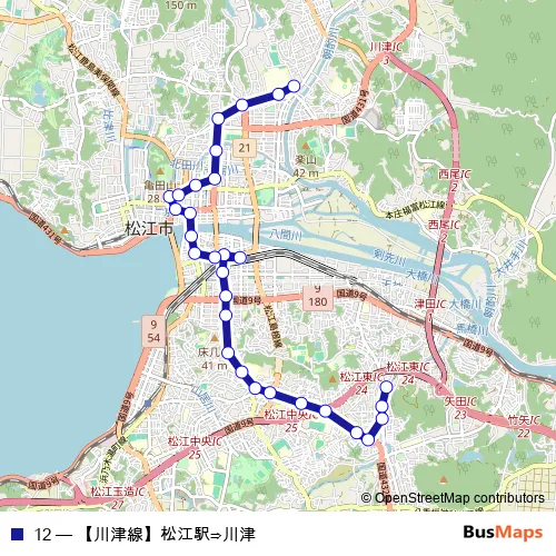See why over 2 million users trust and consider busmaps.com as the best public transport website. busmaps gives you Matsue Buses suggested routes, real-time bus tracker, line route maps in Matsue, and helps to find the closest 12 bus stops near you. No internet available? Download an offline PDF map and bus schedule for the 12 bus to take on your trip.