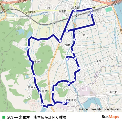 Click here to view the nearest 203 - 虫生津・浅木反時計回り循環 bus stop.