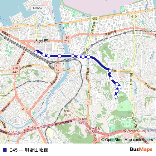 See why over 2 million users trust and consider busmaps.com as the best public transport website. busmaps gives you Oita Buses suggested routes, real-time bus tracker, line route maps in Oita, and helps to find the closest E45 bus stops near you. No internet available? Download an offline PDF map and bus schedule for the E45 bus to take on your trip.