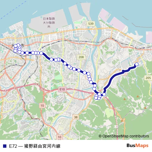 See why over 2 million users trust and consider busmaps.com as the best public transport website. busmaps gives you Oita Buses suggested routes, real-time bus tracker, line route maps in Oita, and helps to find the closest E72 bus stops near you. No internet available? Download an offline PDF map and bus schedule for the E72 bus to take on your trip.