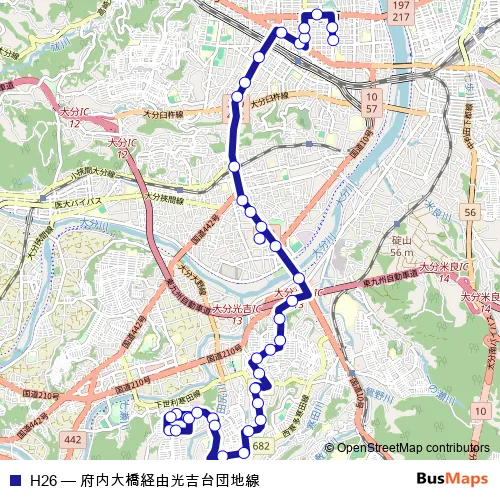 H26 (通过府内大桥的光吉台住宅小区线) Bus in Oita