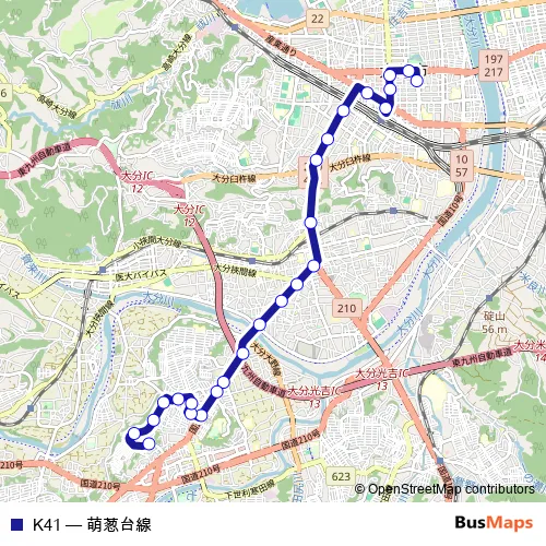 See why over 2 million users trust and consider busmaps.com as the best public transport website. busmaps gives you Oita Buses suggested routes, real-time bus tracker, line route maps in Oita, and helps to find the closest K41 bus stops near you. No internet available? Download an offline PDF map and bus schedule for the K41 bus to take on your trip.