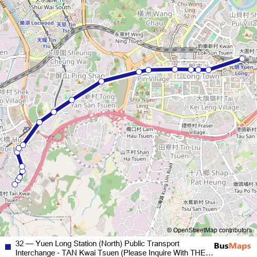Bus 32 - Yuen Long Station (North) Public Transport Interchange - TAN Kwai Tsuen (Please Inquire With THE Operator About THE Payment Arrangement OF THE TWO-WAY Fare ON This Route.) in Yuen Long: Stops & Timetable