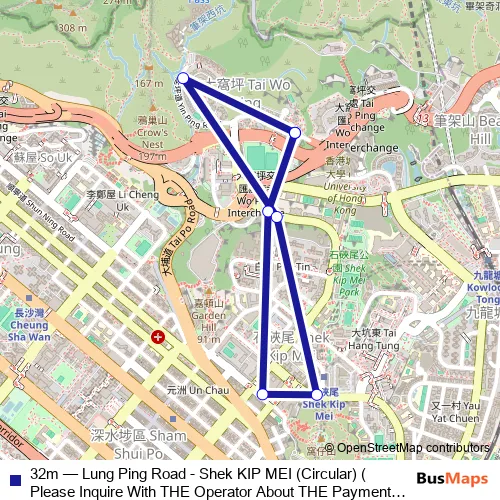 See why over 2 million users trust and consider busmaps.com as the best public transport website. busmaps gives you Sham Shui Po Buses suggested routes, real-time bus tracker, line route maps in Sham Shui Po, and helps to find the closest 32m bus stops near you. No internet available? Download an offline PDF map and bus schedule for the 32m bus to take on your trip.