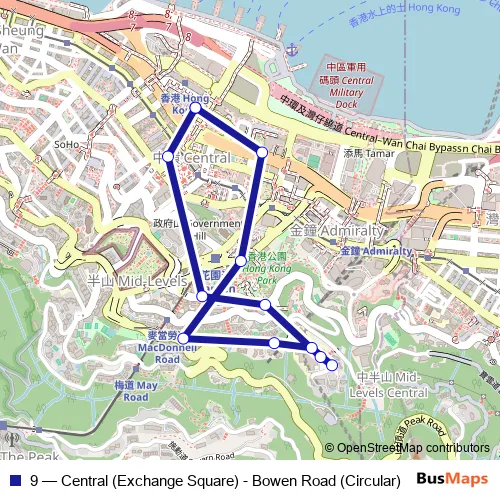 Bus 9 - Central (Exchange Square) - Bowen Road (Circular) Schedule in Central