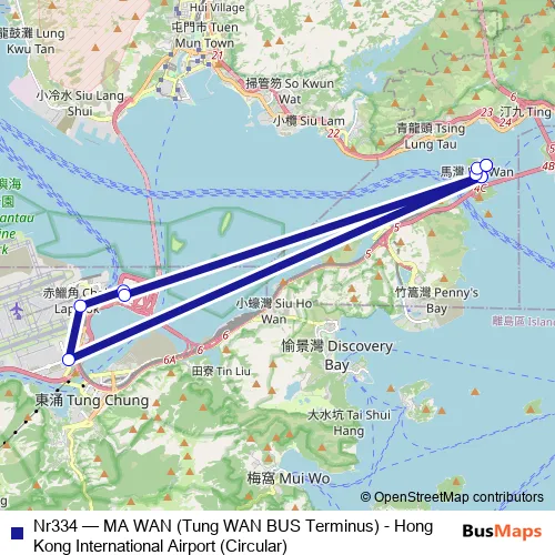 Click here to view the nearest Nr334 - MA WAN (Tung WAN BUS Terminus) - Hong Kong International Airport (Circular) bus stop.