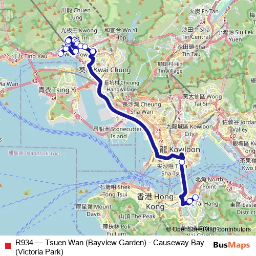 R934 Bus - 荃灣(灣景花園) - 銅鑼灣(維多利亞公園)