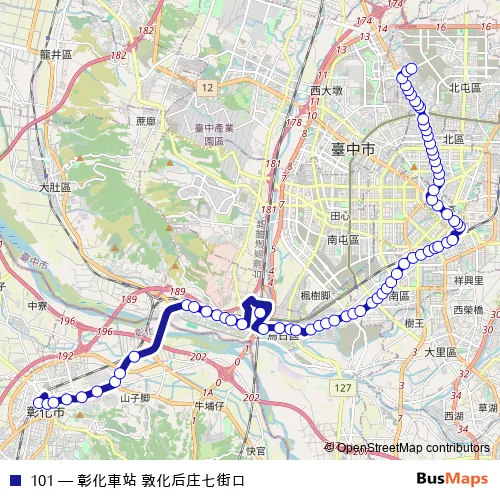See why over 2 million users trust and consider busmaps.com as the best public transport website. busmaps gives you Taichung Buses suggested routes, real-time bus tracker, line route maps in Taichung, and helps to find the closest 101 bus stops near you. No internet available? Download an offline PDF map and bus schedule for the 101 bus to take on your trip.