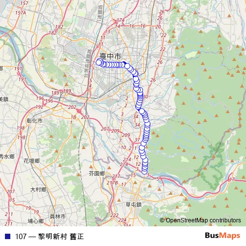 See why over 2 million users trust and consider busmaps.com as the best public transport website. busmaps gives you Taichung Buses suggested routes, real-time bus tracker, line route maps in Taichung, and helps to find the closest 107 bus stops near you. No internet available? Download an offline PDF map and bus schedule for the 107 bus to take on your trip.