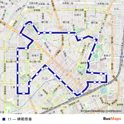 See why over 2 million users trust and consider busmaps.com as the best public transport website. busmaps gives you Taichung Buses suggested routes, real-time bus tracker, line route maps in Taichung, and helps to find the closest 11 bus stops near you. No internet available? Download an offline PDF map and bus schedule for the 11 bus to take on your trip.