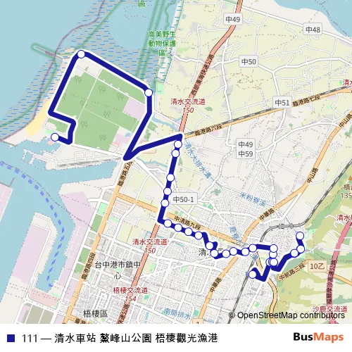 Click here to view the nearest 111 - 清水車站 鰲峰山公園 梧棲觀光漁港 bus stop.