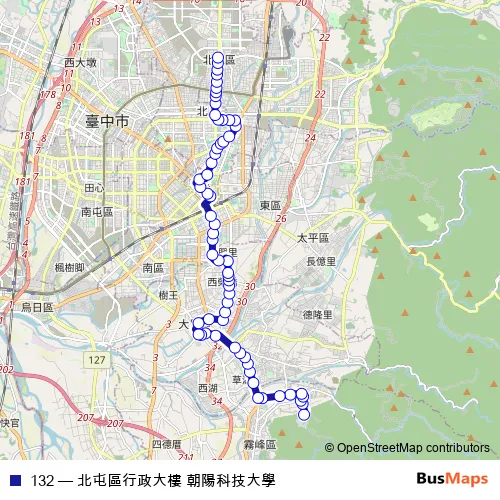 Click here to view the nearest 132 - 北屯區行政大樓 朝陽科技大學 bus stop.