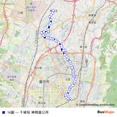 Bus 14副 - 干城站 神岡區公所: Full Schedule in Taichung