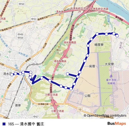 Click here to view the nearest 165 - 清水國中 舊庄 bus stop.