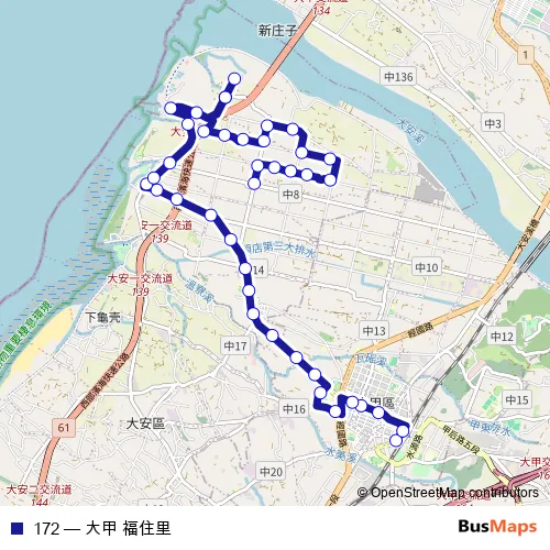 Click here to view the nearest 172 - 大甲 福住里 bus stop.