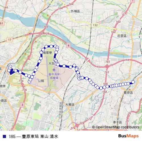 Click here to view the nearest 185 - 豐原東站 東山 清水 bus stop.