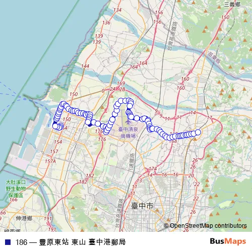 Click here to view the nearest 186 - 豐原東站 東山 臺中港郵局 bus stop.