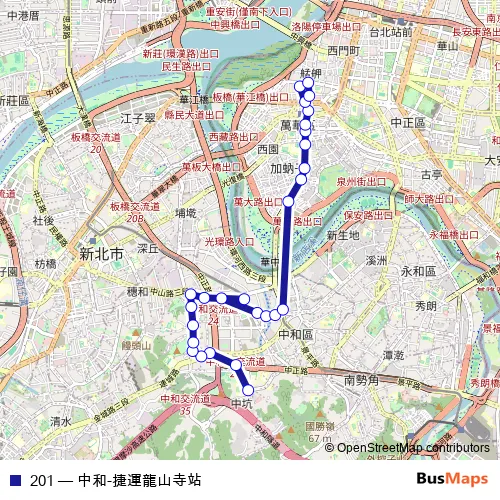 Click here to view the nearest 201 - 中和-捷運龍山寺站 bus stop.