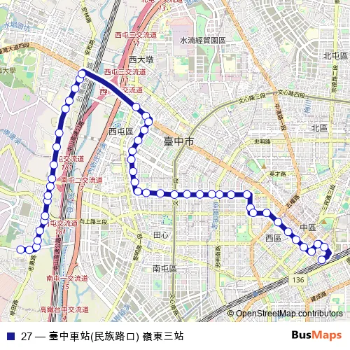 Bus 27 - 臺中車站(民族路口) 嶺東三站 Schedule in Taichung