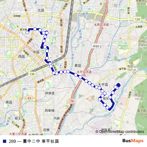 See why over 2 million users trust and consider busmaps.com as the best public transport website. busmaps gives you Taichung Buses suggested routes, real-time bus tracker, line route maps in Taichung, and helps to find the closest 289 bus stops near you. No internet available? Download an offline PDF map and bus schedule for the 289 bus to take on your trip.
