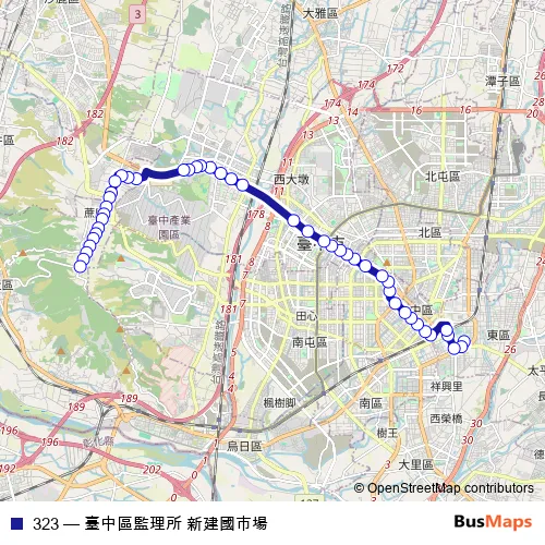 Click here to view the nearest 323 - 臺中區監理所 新建國市場 bus stop.