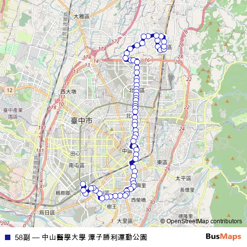 Bus 58副 - 中山醫學大學 潭子勝利運動公園: Full Schedule in Taichung