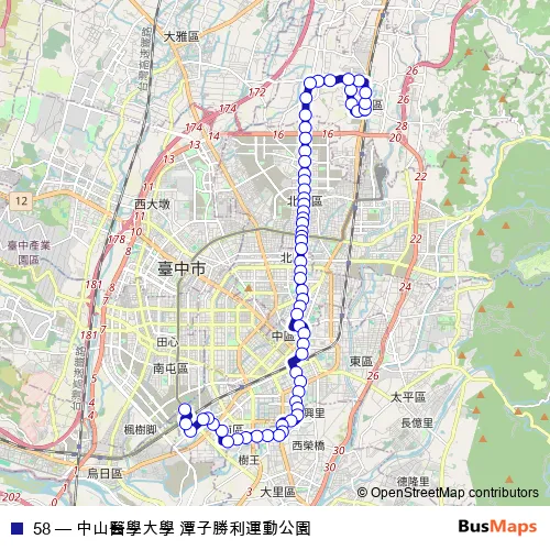 Bus 58 - 中山醫學大學 潭子勝利運動公園: Full Schedule in Taichung