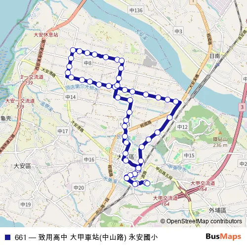 Click here to view the nearest 661 - 致用高中 大甲車站(中山路) 永安國小 bus stop.