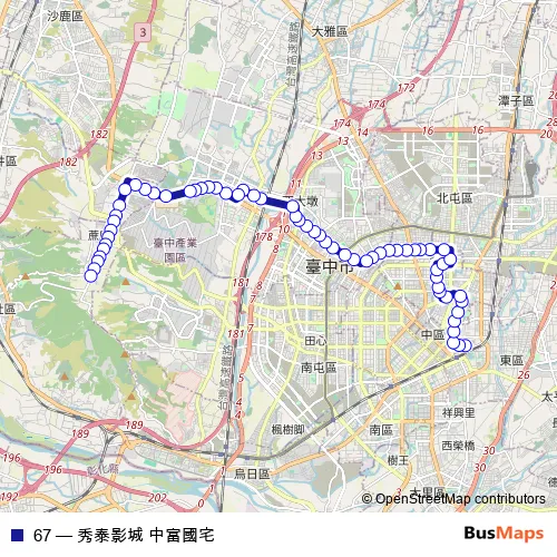Bus 67 - 秀泰影城 中富國宅 in Taichung: Stops & Timetable